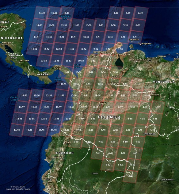 Cuadrícula Landsat para Colombia, este mapa se puede consultar on-line en