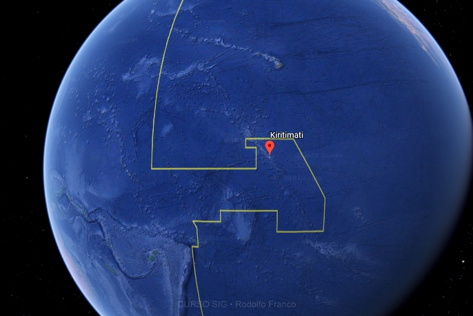 Tal como se ha comentado, la República de Kiribati es la primera nación en entrar en un nuevo día cada vez. Este país está conformado por varias decenas de atolones coralinos y una isla volcánica, tierras emergidas que se dispersan en un área de más de tres millones de kilómetros cuadrados. Entre estas islas está Kiritimati y es considerada la primera zona poblada del mundo en celebrar año nuevo.