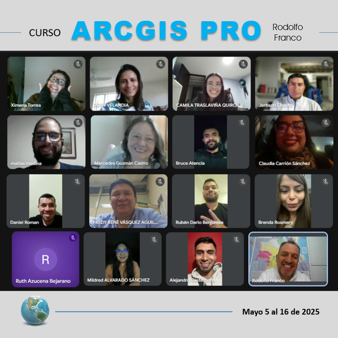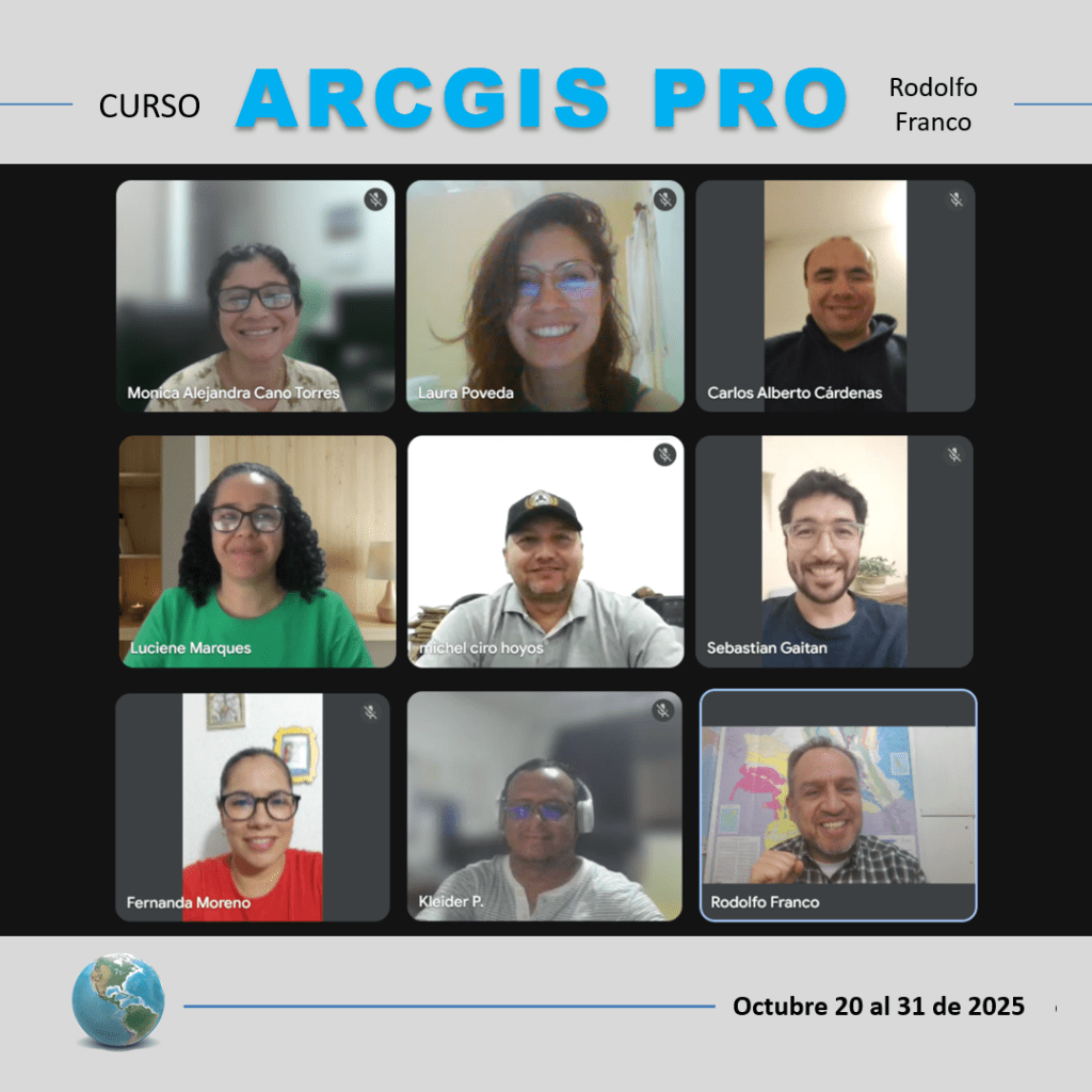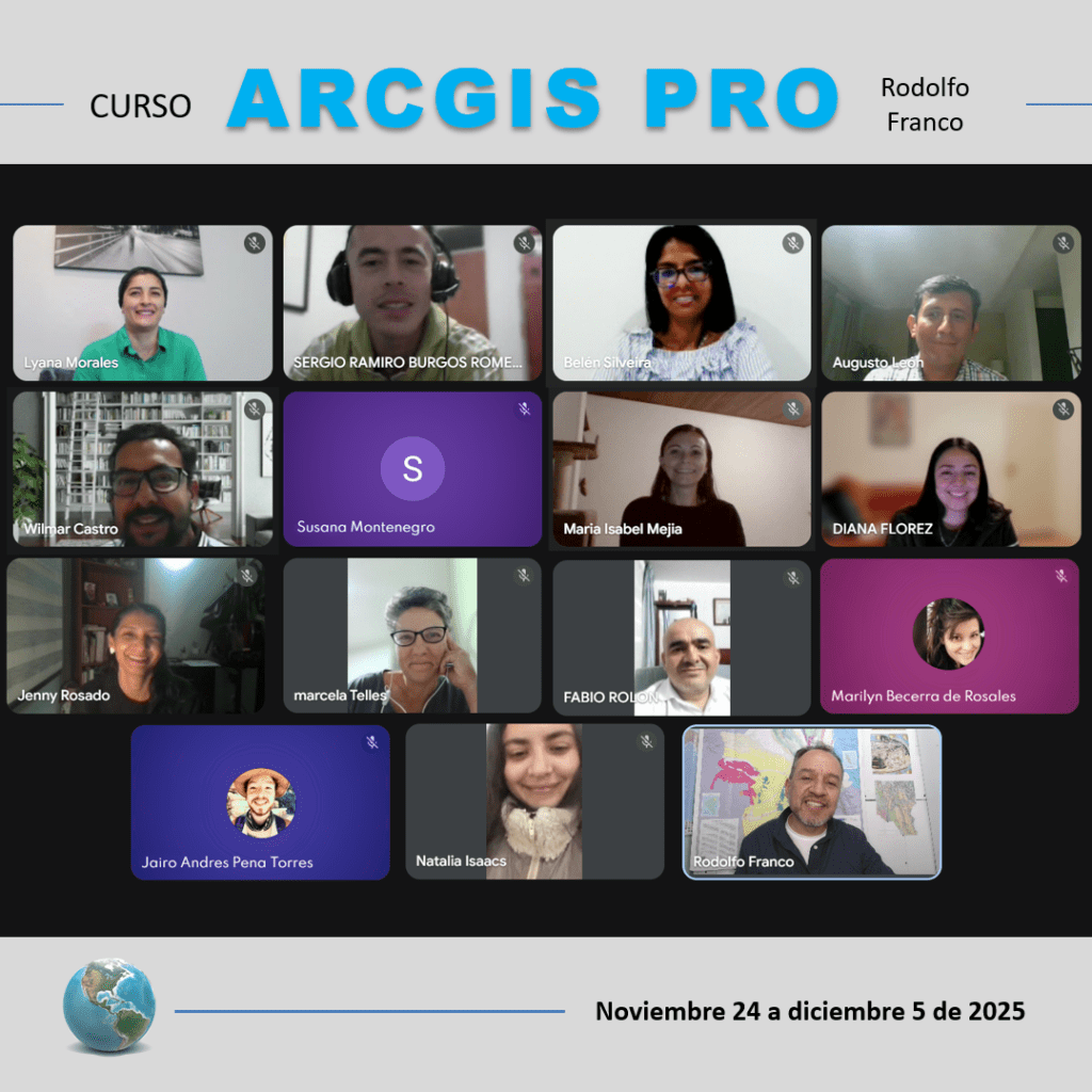 Curso ARCGIS PRO. Capacitación intensiva en clases en vivo online de 30 horas en dos semanas de lunes a viernes de 6 pm a 9 pm. Es un curso particular independiente de cualquier institución o empresa.