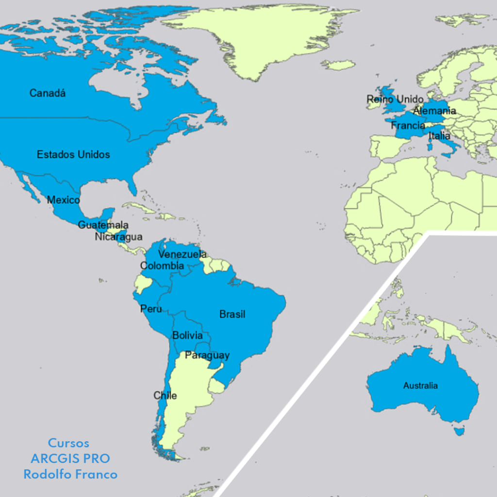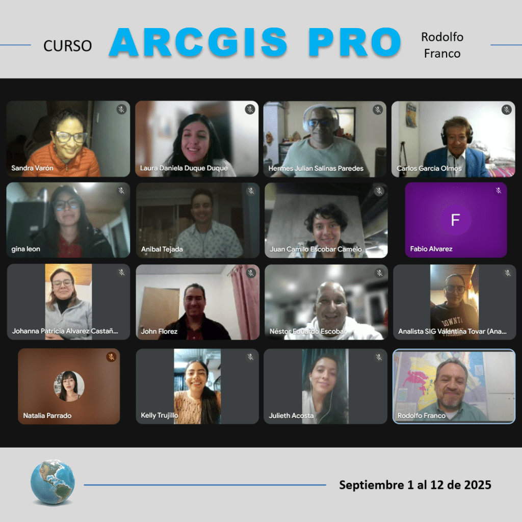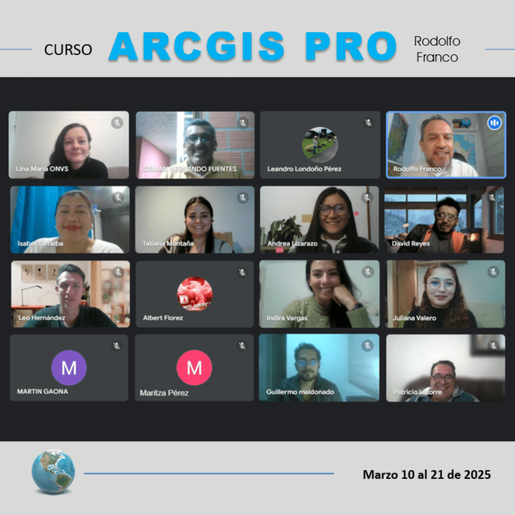 Curso ARCGIS PRO. Capacitación intensiva en clases en vivo online de 30 horas en dos semanas de lunes a viernes de 6 pm a 9 pm. Es un curso particular independiente de cualquier institución o empresa.