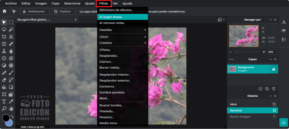 Enfoque y Claridad en Pixlr E: