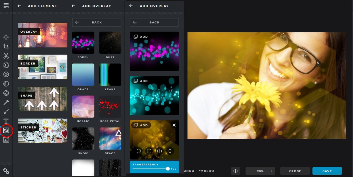 La mayoría de los editores fotográficos online presentan la opción de colocar texturas sobrepuestas a una imagen tales como: texturas de papel, metal, ladrillo, agua, madera, grunge, luces, burbujas, entre otros.