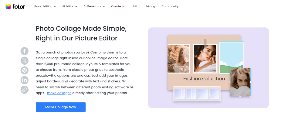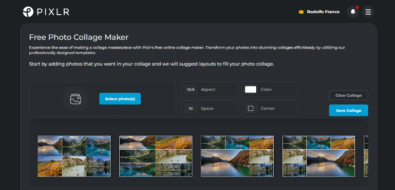 Un collage es una imagen compuesta de varios lienzos con imágenes diferentes o con un conjunto de imágenes de una misma temática o elementos comunes. Generalmente los fotoeditores online disponen de la opción Collage como una sección independiente al editor principal. A continuación, algunos ejemplos: