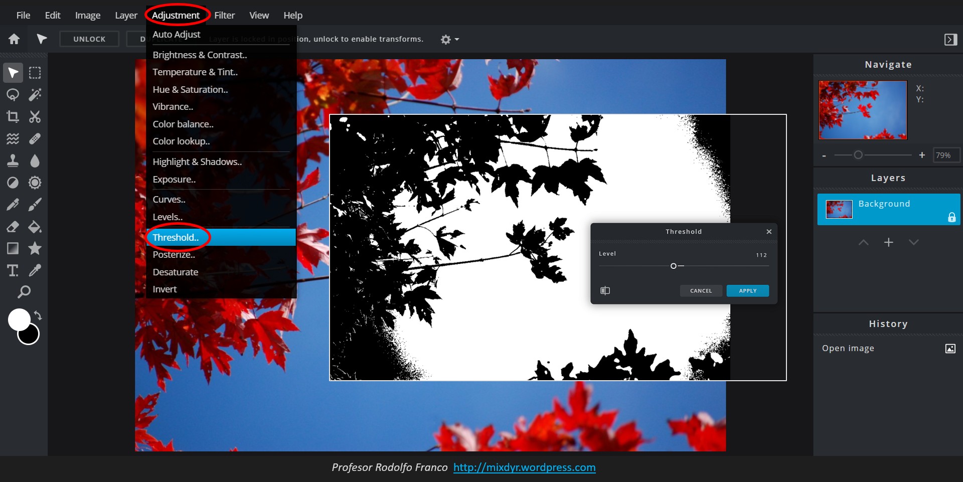 A continuación la ruta para aplicar Threshold en algunos editores on-line: