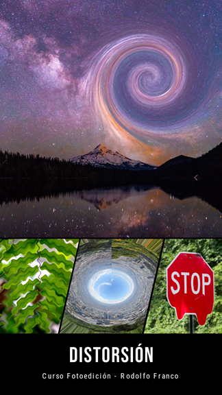 Entre las distorsiones figuran encoger, hinchar generación de remolinos, ondulados, ojo de pez y efectos muy llamativos como las coordenadas polares y la manipulación estilo marioneta.