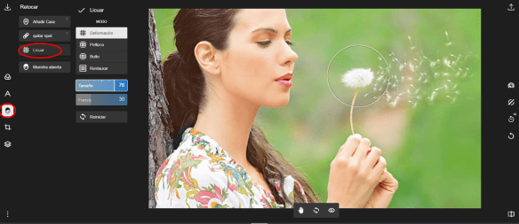 Los siguientes son ejemplos de la herramienta Smudge que permite empujar, manchar o dar la sensación de derretimiento en porciones específicas de una imagen. También se ilustra otra similar llamada Push Left.