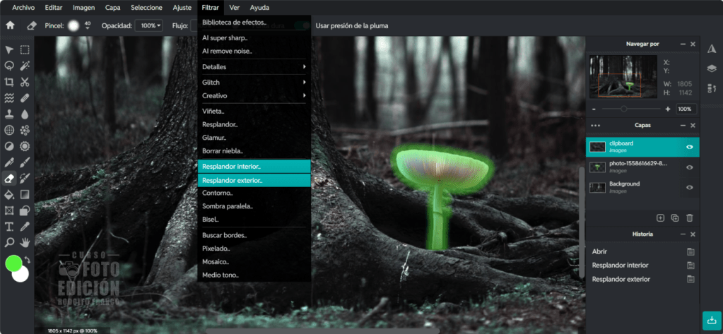Es posible generar halos o resplandores tanto al exterior como al interior de una capa.