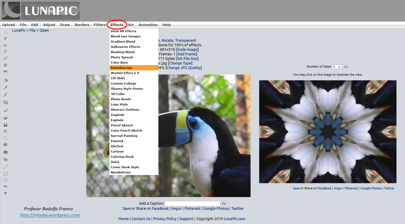 Mediante edición fotográfica también se puede lograr el mismo efecto y varios editores on-line ofrecen esta función entre sus herramientas: