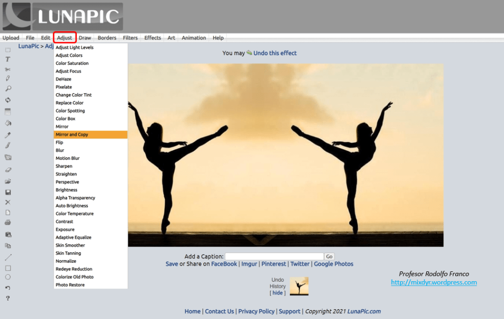 Mirror and copy en Lunapic