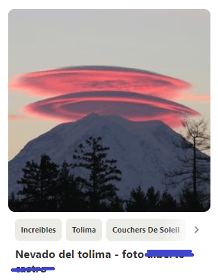 Esta foto aparece en Pinterest y en otros lugares bajo el argumento que es el Nevado del Tolima en Colombia. Por favor!!. Esta imagen es del Monte Rainier en el estado de Washington en Estados Unidos. Varios en redes se argumentan la autoría pero se le puede atribuir a James L. en Flicker quien indica que la tomó en 2004 y además muestra otras capturas del mismo escenario y se puede consultar en https://www.flickr.com/photos/jgpics/68333250