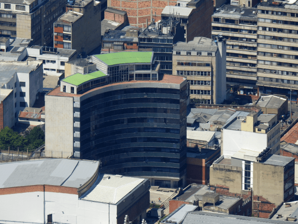 Entrada a la Biblioteca Nacional, zoom desde Torre Colpatria