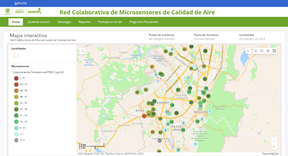 La Red Colaborativa de Microsensores de Calidad de Aire es una iniciativa de la Secretaría Distrital de Ambiente que con participación ciudadana amplia la infraestructura de monitoreo del aire en la Capital. La red sigue en expansión y comprende más de 70 microsensores distribuidos en distintos lugares de la ciudad como entornos escolares, ciclorrutas, bosques urbanos y otros.
