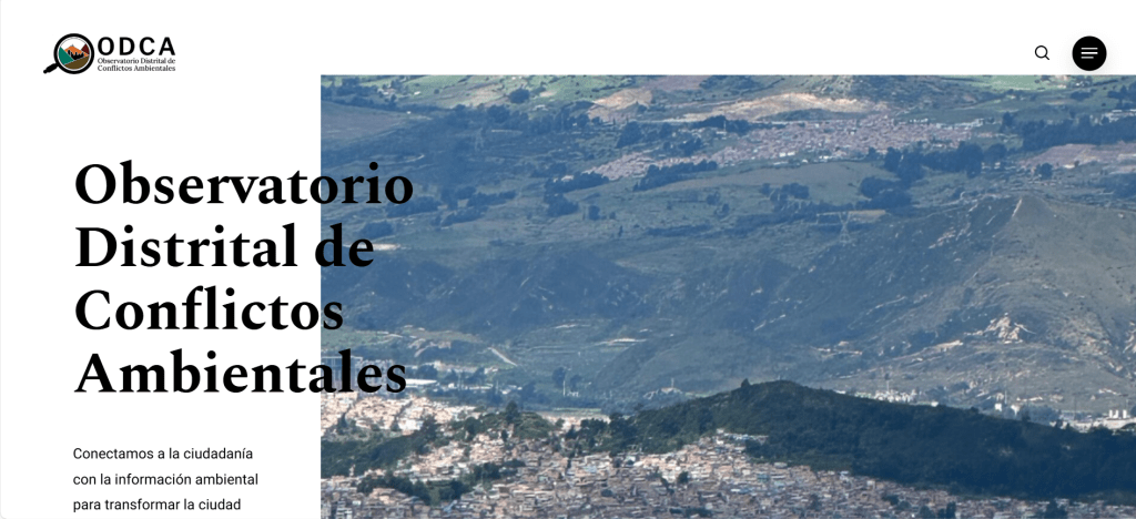 El Observatorio Distrital de Conflictos Ambientales, ODCA, dispone de un espacio web donde espacializa fenómenos de conflictividad socioambiental en Bogotá. El ODCA es una iniciativa del Semillero de Investigación Conflictos Ambientales, Vida y Paz – CaM:βi0S, de la Facultad del Medio Ambiente y Recursos Naturales, Universidad Distrital.