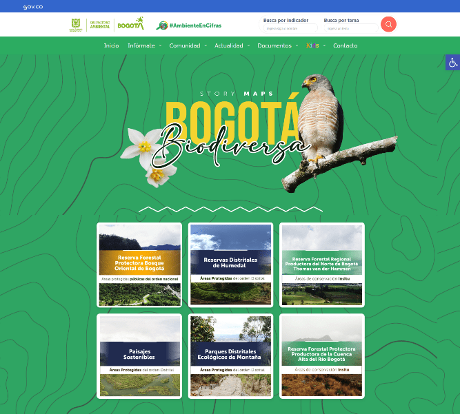 Bogotá Biodiversa es un recurso de la Secretaría Distrital de Ambiente a través del Observatorio Ambiental de Bogotá que reúne storymaps sobre algunos elementos de la Estructura Ecológica Principal de la Capital. La suite comprende: Reserva Forestal Protectora Bosque Oriental de Bogotá, Reservas Distritales de Humedales, Paisajes Sostenibles, Parques Distritales Ecológicos de Montaña, la Reserva Thomas van der Hammen y la Reserva Forestal Protectora de la Cuenca Alta del Río Bogotá.