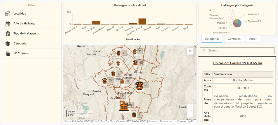La Oficina de Gestión Ambiental, OGA, del Instituto de Desarrollo Urbano, IDU, dispone de un geovisor con información de hallazgos arqueológicos encontrados en obras desarrolladas por la entidad.