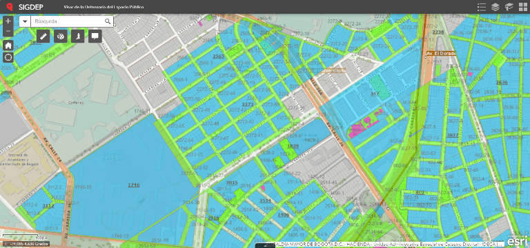 Observatorio del Espacio Público de Bogotá es una herramienta de la Defensoría del Espacio Público y entre sus recursos dispone de un visor geográfico para despliegue de capas de su pertinencia