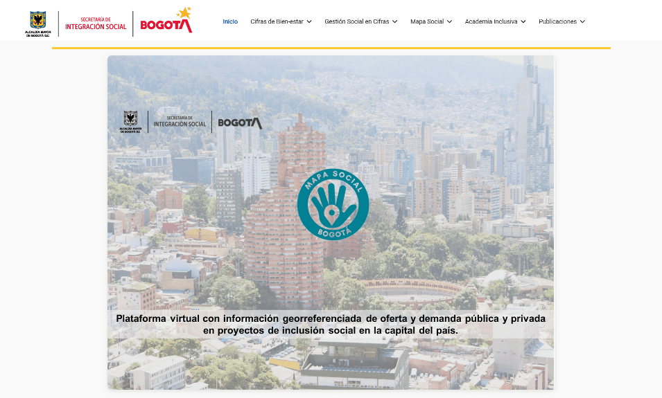 El Mapa Social Bogotá es una plataforma de la Secretaría de Integración Social, SDIS, que integra datos georreferenciados de caracterización socioeconómica de la población, atenciones realizadas por la entidad, avances institucionales y procesos articulados con la academia.