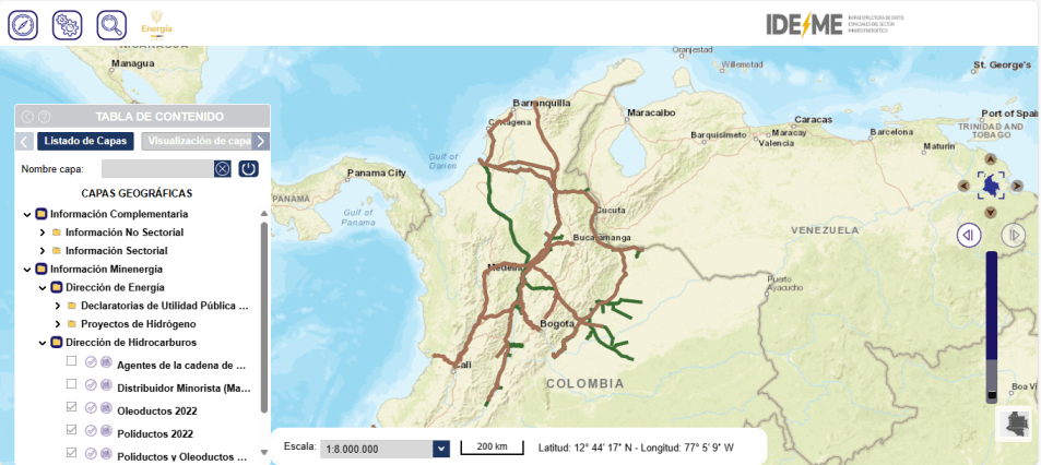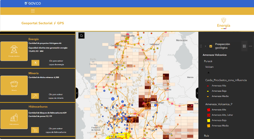 Los siguientes son algunos geovisores y otros recursos de información espacial en temas de minería, hidrocarburos y energía en el territorio colombiano: