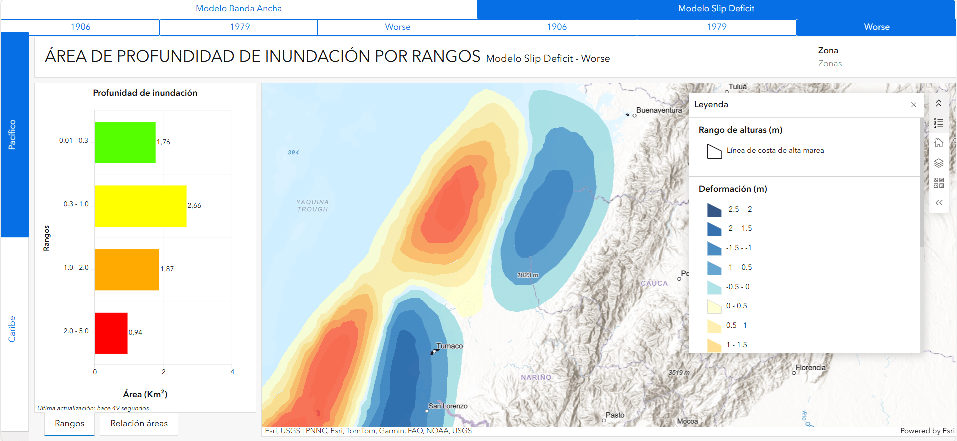 La Dirección General Marítima, DIMAR, dispone de un geovisor de mapas de inundación por tsunami para las costas caucana y nariñense. Incluye modelos para los tsunamis de 1906 y 1979 y proyectados para un escenario extremo.