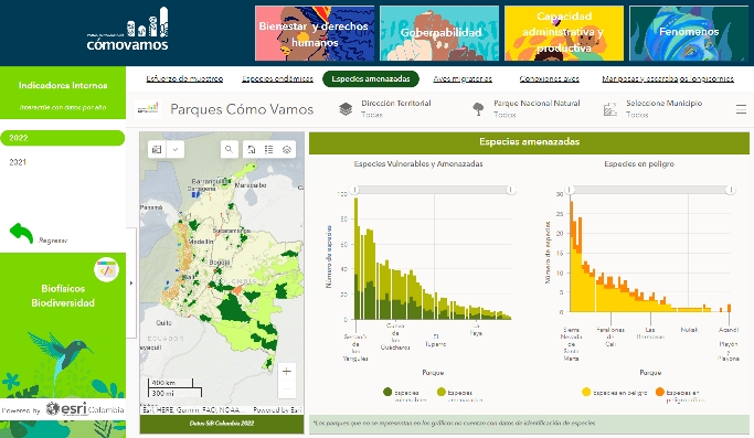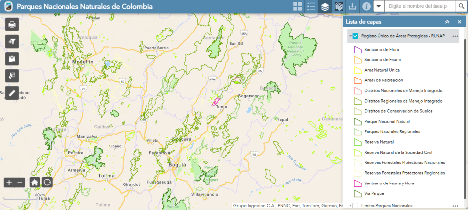 Parques Nacionales Naturales de Colombia cuenta con un reconocido geovisor desde donde se puede consultar y descargar capas del registro único nacional de áreas protegidas, coberturas multianuales en parques nacionales y más información.