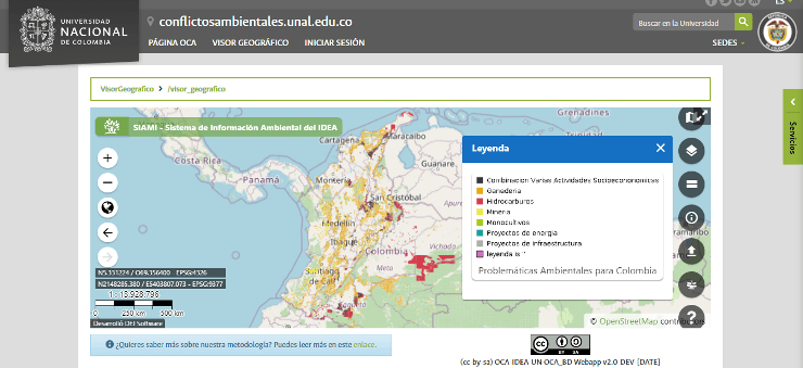 Los siguientes son enlaces a algunos geovisores y otros recursos de información espacial relacionados con conflictos ambientales en Colombia