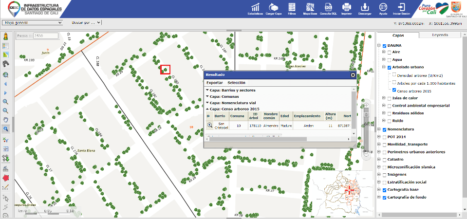 También se puede acceder al censo arbóreo en el geovisor del IDESC en idesc.cali.gov.co/geovisor.php?config=dagma&PHPSESSID=fbkrn9svkhcmg5a4fjnj3u7992&resetsession=groups