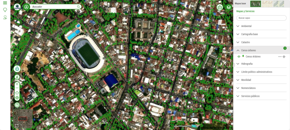 Entre las capas de la plataforma relacionadas con el censo figuran una de árboles, una capa de densidad arbórea por kilómetro cuadrado y una de individuos por cada mil hectáreas. Una vista explicativa y más ligera de estas dos últimas capas se puede consultar en https://geoportal.cali.gov.co/arcgis/apps/MapSeries/index.html?appid=9b50167b694f4e83bbeb20cd9bc977d6