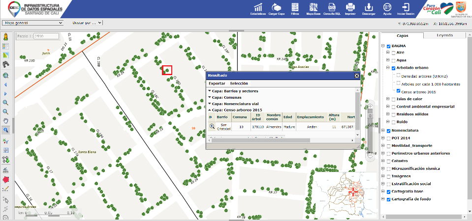 También se puede acceder al censo arbóreo en el geovisor del IDESC en idesc.cali.gov.co/geovisor.php?config=dagma&PHPSESSID=fbkrn9svkhcmg5a4fjnj3u7992&resetsession=groups