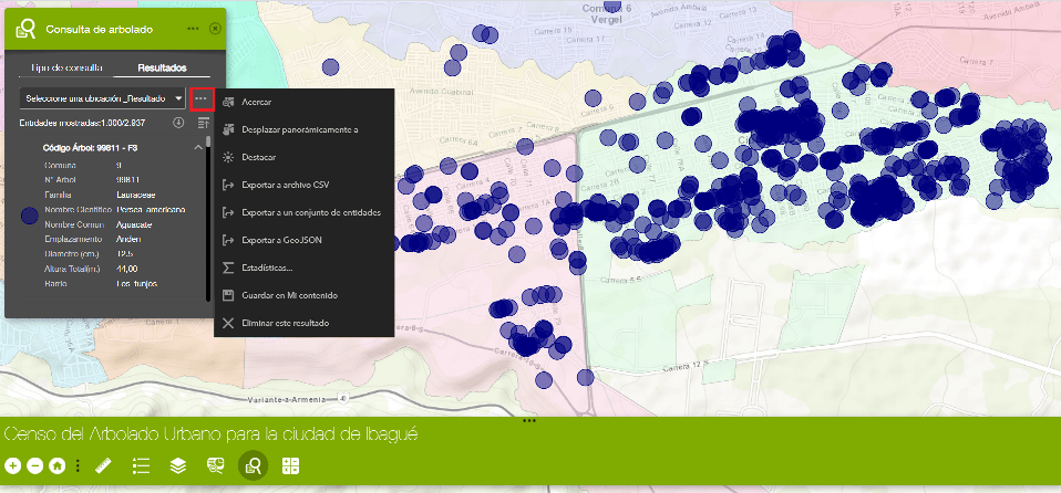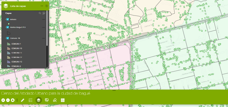 El geovisor del censo arbóreo de la ciudad de Ibagué se puede consultar tanto por el Sistema de Información Geográfico Ambiental del Tolima en https://sia.cortolima.gov.co/arcgis/home/ como también directamente por https://sia.cortolima.gov.co/arcgis/apps/webappviewer/index.html?id=c56e307351c0427b808a7fac07a34453