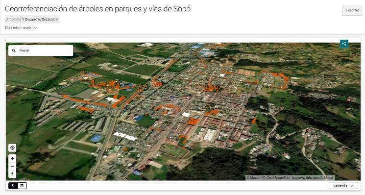 Visualización del arbolado en parques y vías del municipio de Sopó, Cundinamarca, a través del portal de datos abiertos del gobierno nacional