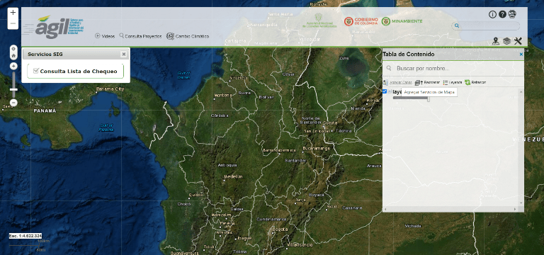 La Autoridad Nacional de Licencias Ambientales, ANLA, cuenta con AGIL, un sistema para el análisis geográfico de información del licenciamiento ambiental. La plataforma permite visualizar capas de diferentes fuentes institucionales para decidir la viabilidad socioambiental de proyectos y a su vez información de estudios presentados a la institución.