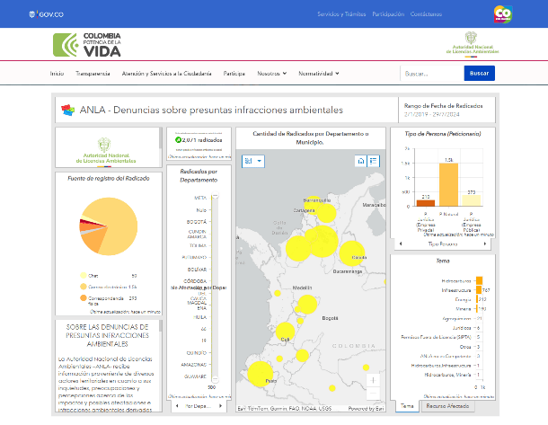 La ANLA dispone también de una colección de tableros de analítica de datos donde consolida indicadores pertinentes de su misión institucional