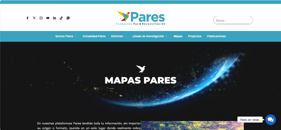 La Fundación Paz & Reconciliación, PARES, cuenta en su web con un visor donde se georreferencia la presencia de grupos armados y también un dashboard con estadísticas de violencia homicida contra líderes y defensores de DDHH. Este último es un recurso de Observatorio para la Defensa de la Vida, Odevida