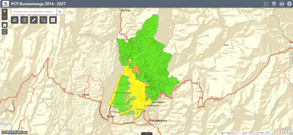La Alcaldía de Bucaramanga dispone de un geovisor con información del Plan de Ordenamiento Territorial del municipio