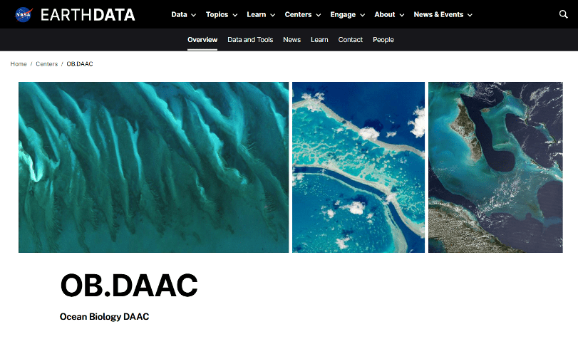 La plataforma Ocean Biology Distributed Active Archive Center, OB DAAC, archiva información de biología oceánica colectada por diferentes sensores de la NASA.