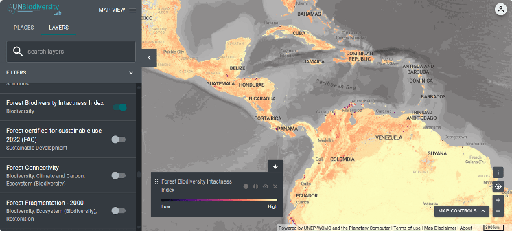 Visor del Laboratorio de Biodiversidad de Naciones Unidas