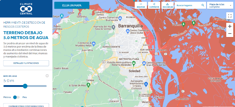 Un tour en Google Earth sobre aumento del nivel del mar con información de Climate Central se puede ver aquí