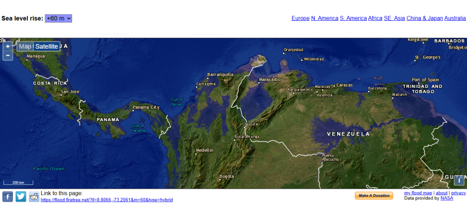 La siguiente es una animación del aumento del nivel del mar para Colombia si la temperatura global aumenta varios grados: