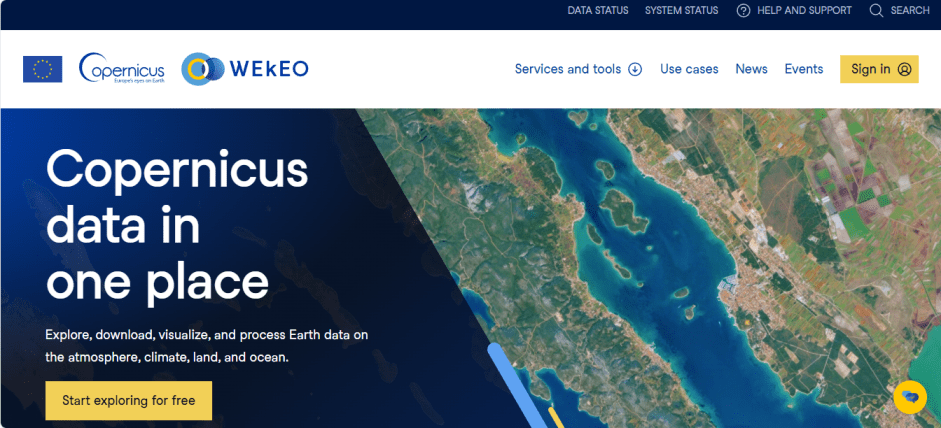 WeKeo es un espacio web que facilita la exploración, visualización, análisis y descarga de datos del programa Copérnico sobre la atmósfera, clima, coberturas y océano.