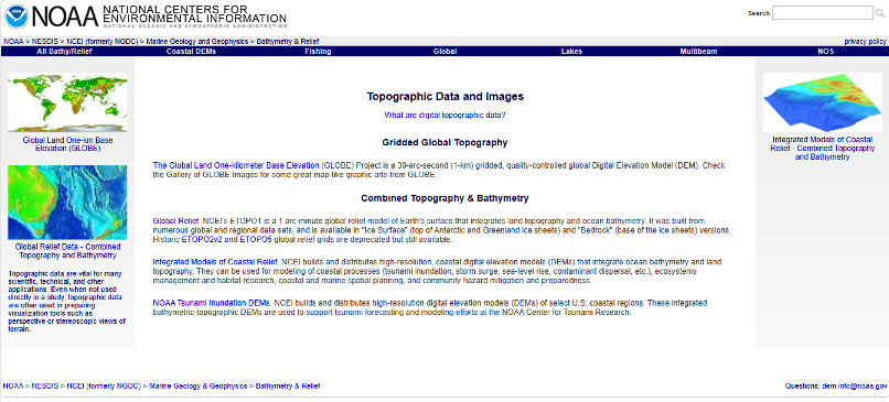 Modelos de elevación y batimetría de NOAA National Centers for Environmental Information (NCEI)