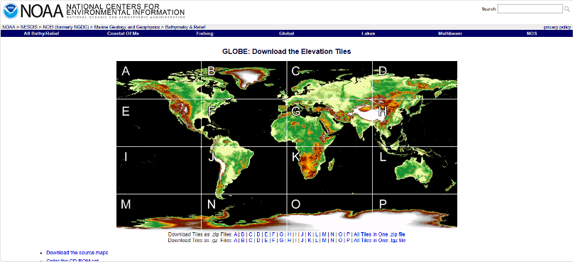 ETOPO Global Relief Model es un producto de la NOAA e integra topografía, batimetría y líneas costeras desde datasets regionales y globales