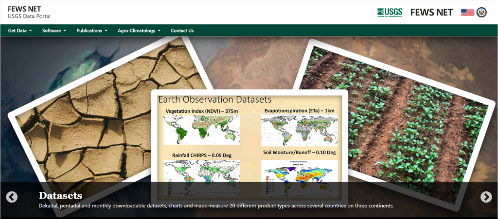 Portal de acceso a geodatos, imágenes satelitales y otros productos derivados que son soporte al Famine Early Warning Systems Network, FEWS NET, red creada para ayudar en la planificación ante crisis humanitarias y proveer alertas tempranas sobre seguridad alimentaria en el mundo. Incluye una sección dedicada a información agro-climatológica