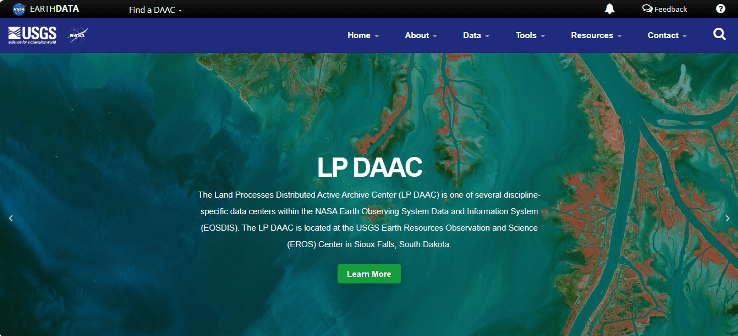 El Land Processes Distributed Active Archive Center, LP DAAC, es una asociación entre el USGS y el Earth Observing System Data and Information System (EOSDIS) de la NASA. El LP DAAC procesa, archiva y distribuye productos de datos terrestres obtenidos por ambas instituciones a partir de diferentes sensores remotos. Comprende datos de coberturas, índices de vegetación, reflectancia superficial, radiancia, temperatura y topografía.