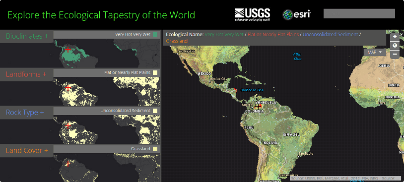 Geovisor de USGS y ESRI que despliega la estructura ecológica global a resolución de 250m. App desarrollada en Living Atlas of the World. También se puede consultar un storymap relacionado