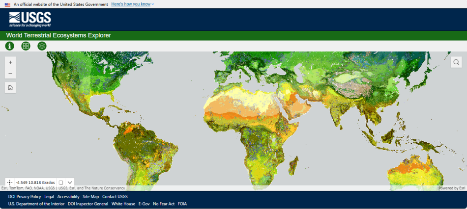 Geovisor del USGS con clasificación de ecosistemas terrestres del mundo