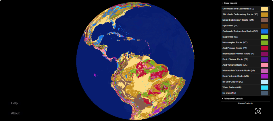 GLiM es un mapa litológico global desarrollado por Jens Hartmann and Nils Moosdorf, del Center for Earth System Research and Sustainability, CEN – University of Hamburg. Felicia Brisc lo muestra en un visor disponible Aquí. El paper original y datos para descarga en AGUPUBS y en PANGAEA