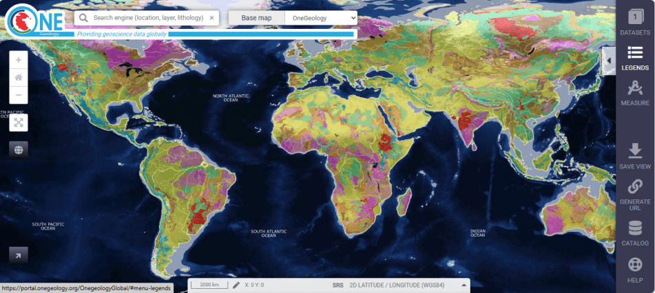 OneGeology dispone de un robusto portal con centenares de datasets tanto de la misma organización como de muchas fuentes en geociencias. Comprende una amplia gama de temáticas como bioestratigrafía, cronoestratigrafía, geocronología, geomagnetismo, geotermia, hidrogeología, mineralogía, sedimentología, geología estructural y mucho más.