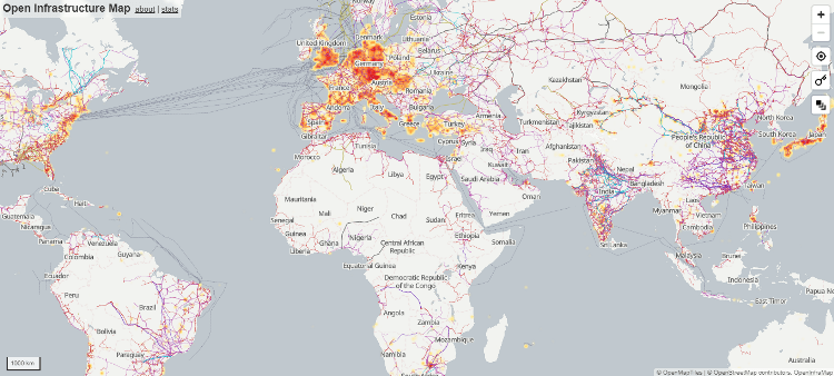 Mapa mundial de Infraestructura eléctrica, solar, telecomunicaciones, agua, petróleo y gas