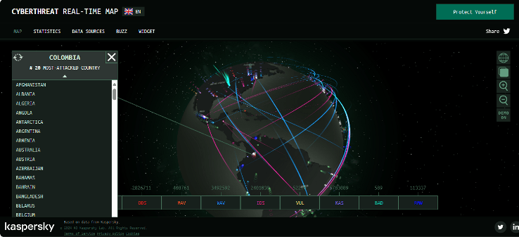 Mapa de ataques informáticos en tiempo real desarrollado por Kaspersky