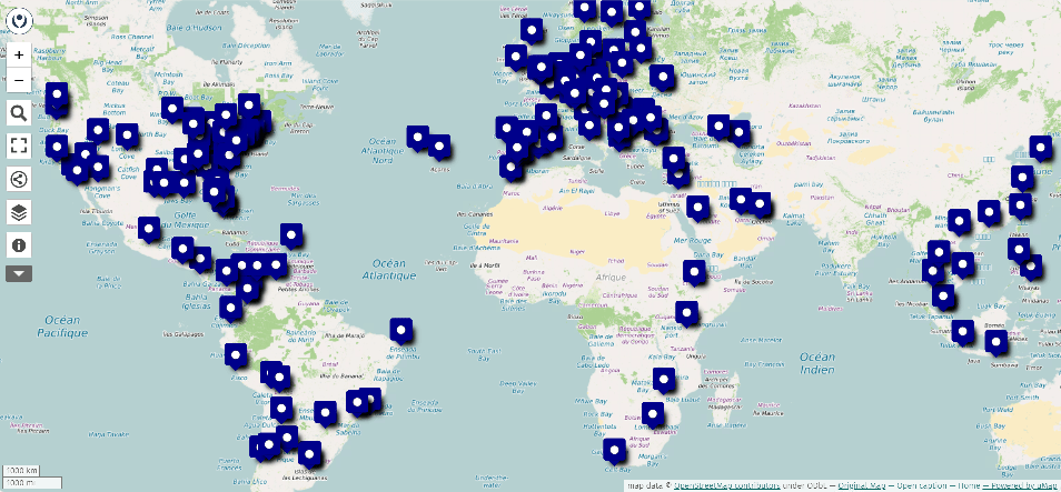 Webmap creado por Piersoft en la plataforma uMAP con registro de contraseñas WiFi gratis de aeropuertos y salas VIP a lo largo del mundo